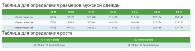 tablicy sootvetstviya razmerov ekipirovki ixs