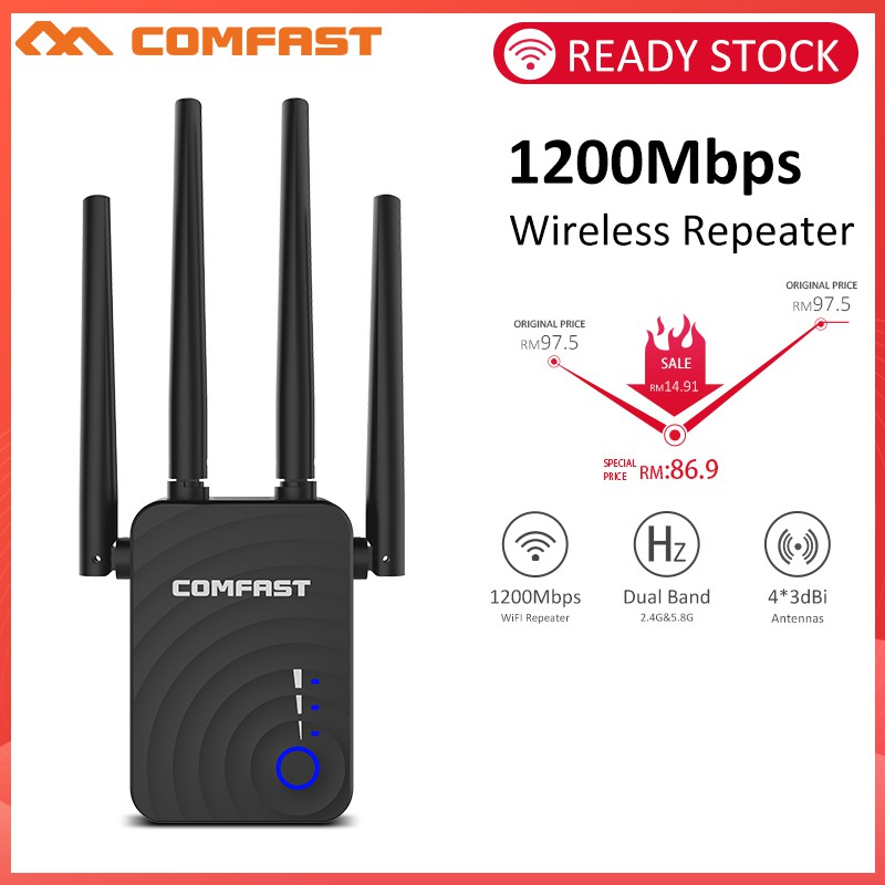 Ready Stock Comfast 1200mbps Cf Wr754ac Wireless Wifi Extender 2 4 5ghz Dual Band Repeater Signal Booster With 4 Ethernet Antennas Shopee Malaysia