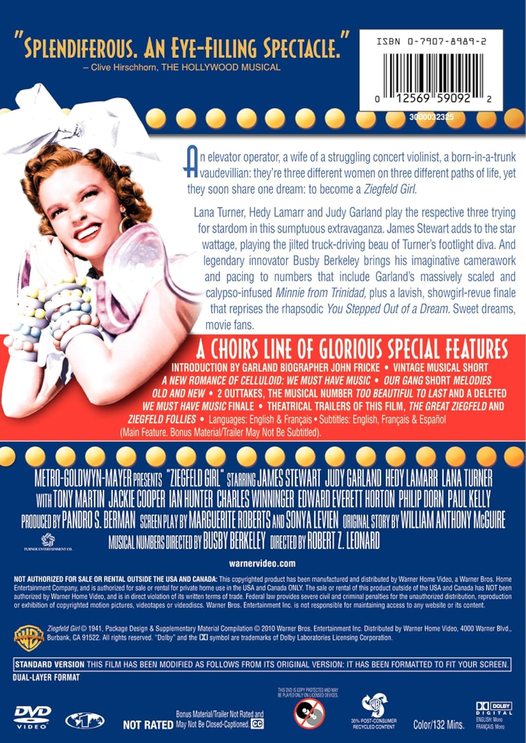 Ziegfeld Girl Dvd James Stewart Judy Garland Hedy Lamarr Lana Turner Tony Martin Jackie Cooper Ian Hunter Edward Everett Horton Charles Winninger Philip Dorn Paul Kelly Eve Arden Dan Dailey Al Shean Fay Holden Felix Amazon Com