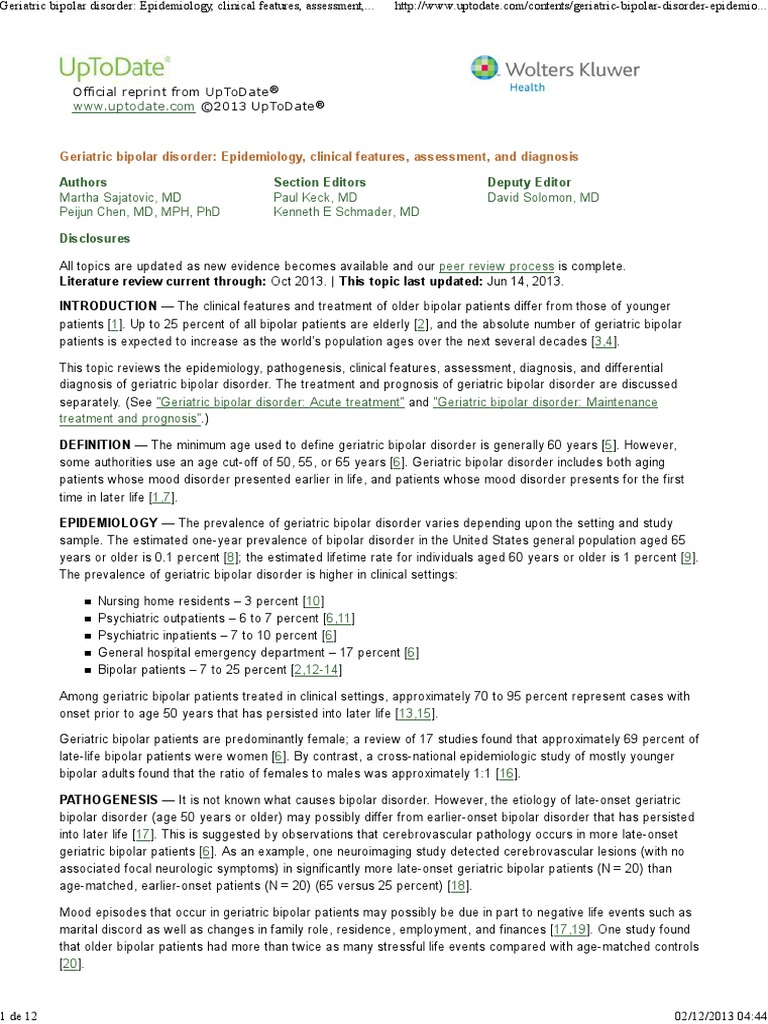 Geriatric bipolar disorder - Epidemiology, clinical features, assessment, and diagnosis.pdf | Bipolar Disorder | Mania